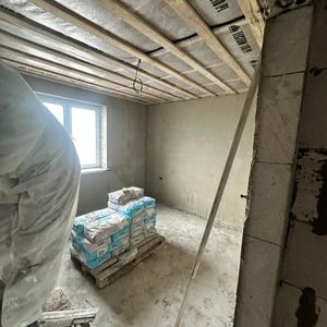 В новом доме , находящемся в д.Лавно нужно поштукатурить под покраску стены и гипсокартонный потолок. Стены поштукатурены
