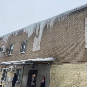 Требуется очистить козырек крыши от сосулек и наледи